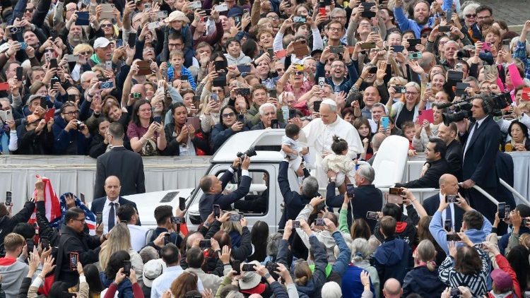 A los miles de files y peregrinos que se congregaron en la Plaza de San Pedro para la Audiencia general, el Santo Padre les dijo que, “la resurrección de Jesucristo es un acontecimiento que nunca termina de ser contemplado y meditado, y cuanto más se profundiza en él, más nos quedamos llenos de asombro, atraídos como por una luz deslumbrante y al mismo tiempo fascinante”.