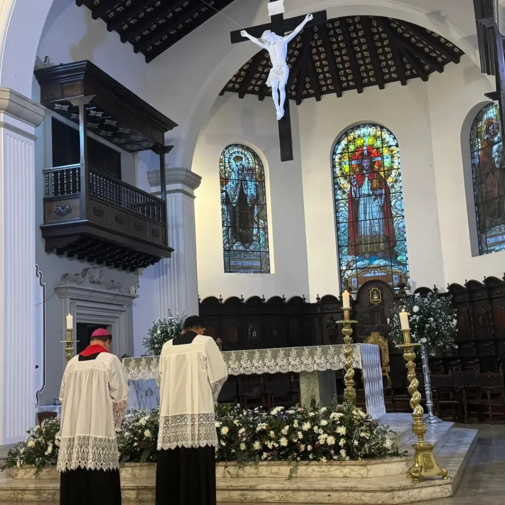 ️En una tarde marcada por la oración y el silencio expectante, este viernes 27 de marzo a las 6:00 p.m., la Catedral de San Cristóbal vivió un momento histórico. Bajo la presidencia de Mons. Lisandro Rivas y su Auxiliar Mons. Juan Ayala, fue develado y bendecido el nuevo Crucifijo que, como en las grandes catedrales del mundo, presidirá desde ahora las Misas Pontificales.